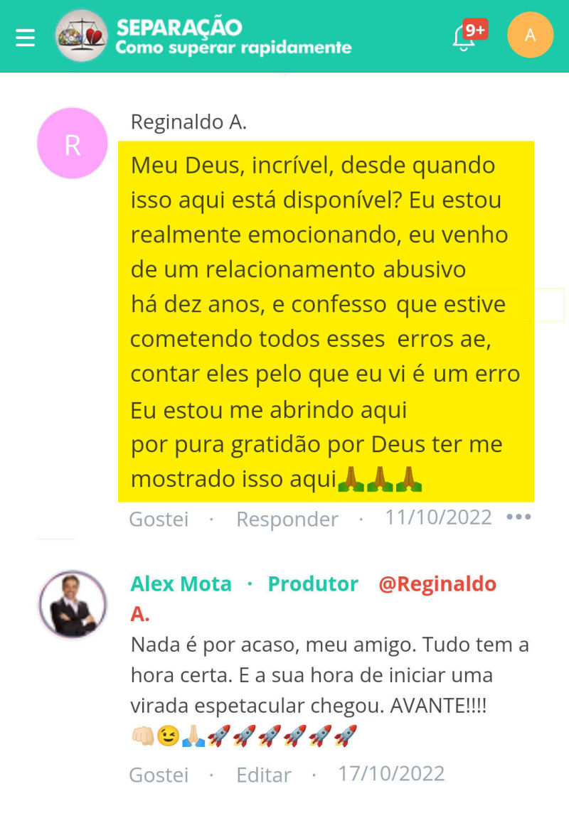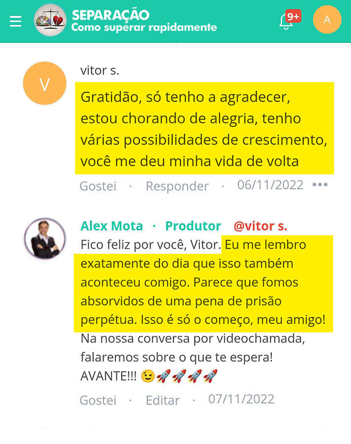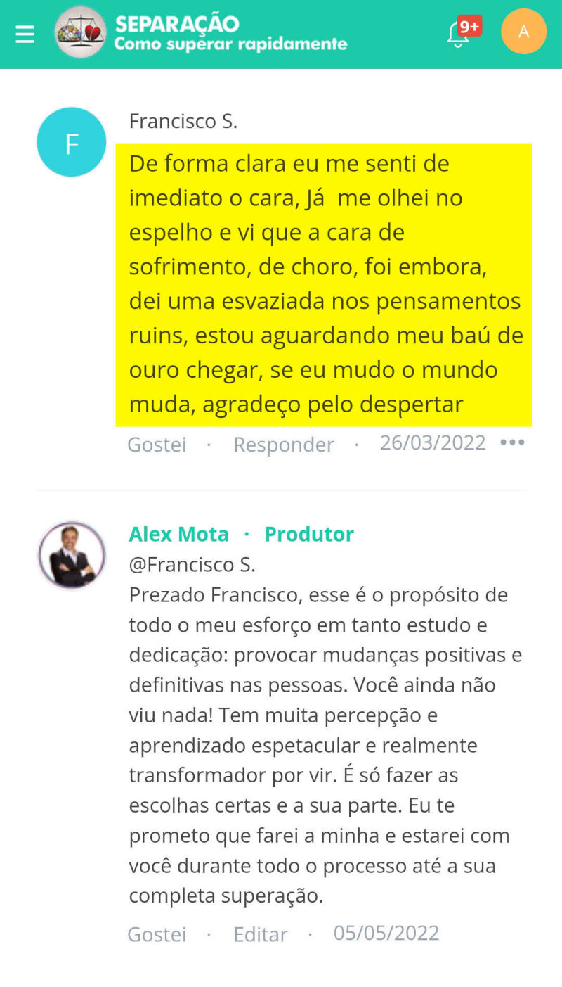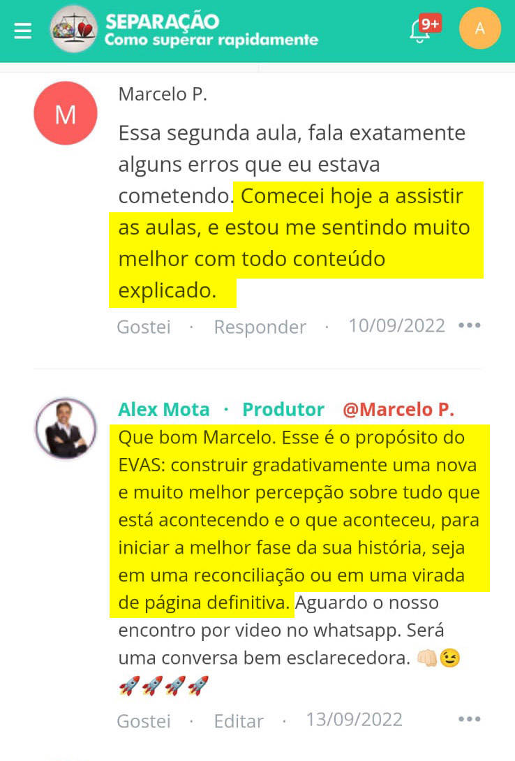 Sim. Você poderá fazer os comentários sobre suas percepções logo abaixo de cada aula para que outros colegas aprendam com as suas percepções e vice-versa. Para evitar redundâncias, os comentários mais relevantes e pertinentes recebem complementações do Alex. E ao final da Imersão, poderá optar em participar de uma AULA AO VIVO para questionar suas dúvidas sobre todo o processo de rápida superação.